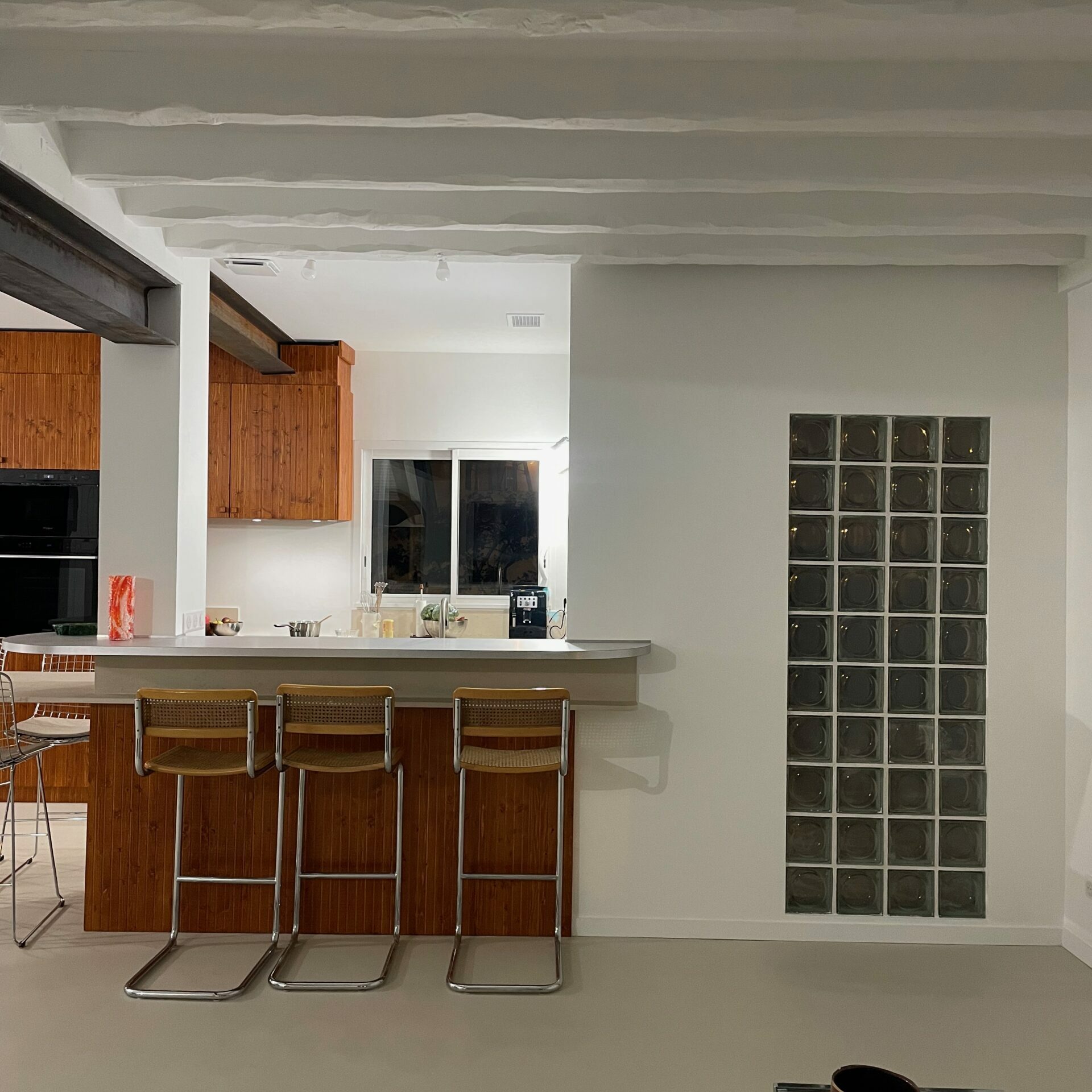 Réalisation d’une déclaration préalable à la Mairie, pour une rénovation de maison individuelle. Photo cuisine après rénovation, à Anglet (64).
